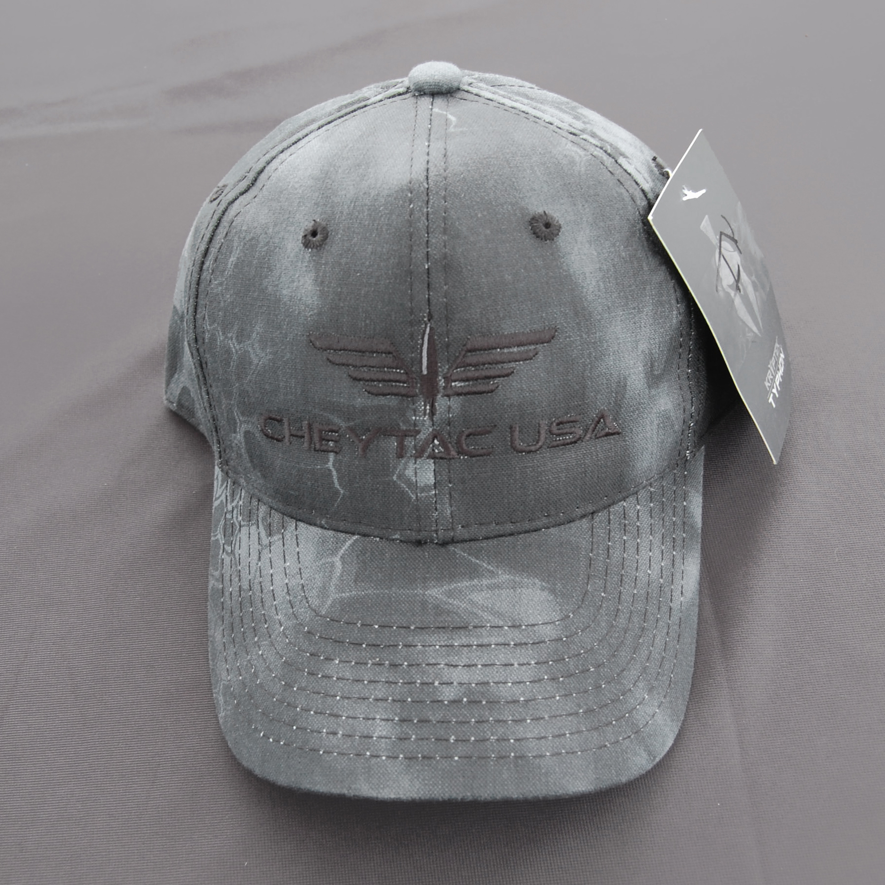 Kryptek® Camouflage hat including the large CheyTac® logo on front. Adjustable Velcro rear closure strap. One size fits all.